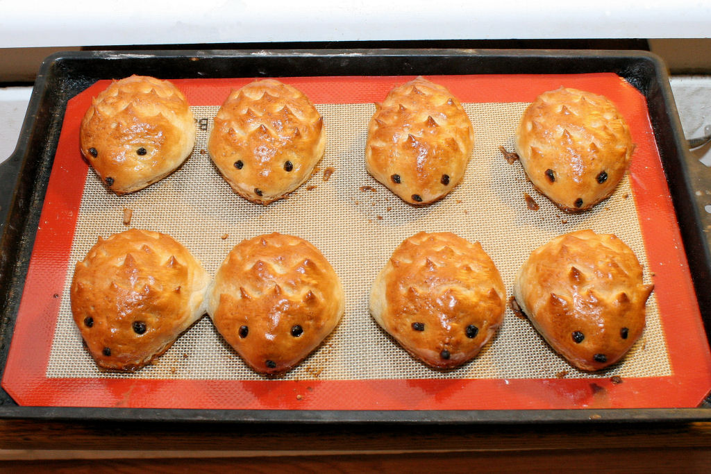 Yesterday I baked some more: hedgehogs! They were on the cover of one of my new bread books, and I wanted to try them at a time when there would be other people to eat the rest of the 16 rolls the recipe makes. They came out beautifully, as you can see... I packed up some other stuff, hit Trader Joe's for cheese to spread on the rolls, and drove up to Citrus Heights, above Sacramento. [livejournal.com profile] childe_dirk and M put on a fabulous party, as always -- lots of people, about half of whom were pretty good friends or firm acquaintances of mine, tons of food (including a wheat-free tray, on which I placed three hedgehogs and replenished them regularly), alcohol but very little drunkenness, lots of conversation, and good volume control on the video games (after being blasted with bad karaokeGuitar Hero at Amanda's place, it was a relief to hear it just as unobtrusive background music as we chatted). When midnight came, we all counted it down, and toasted each other before exchanging kisses. I got thoroughly snogged by [livejournal.com profile] firestrike in the middle of an anecdote, and [livejournal.com profile] supersniffles steadied my plate and waited patiently for the minute or so it took to get my brain back on track again.